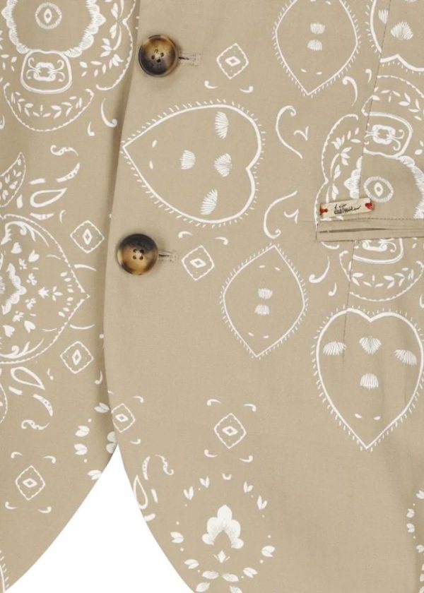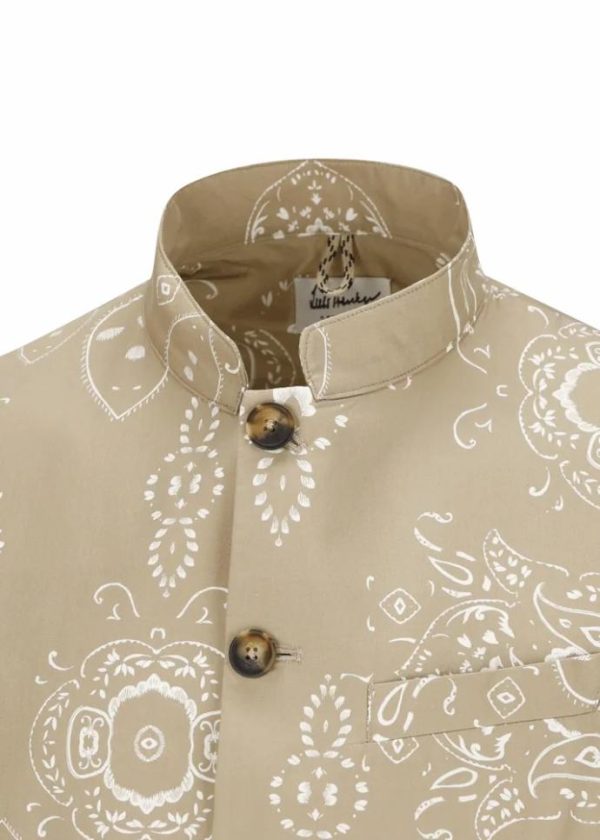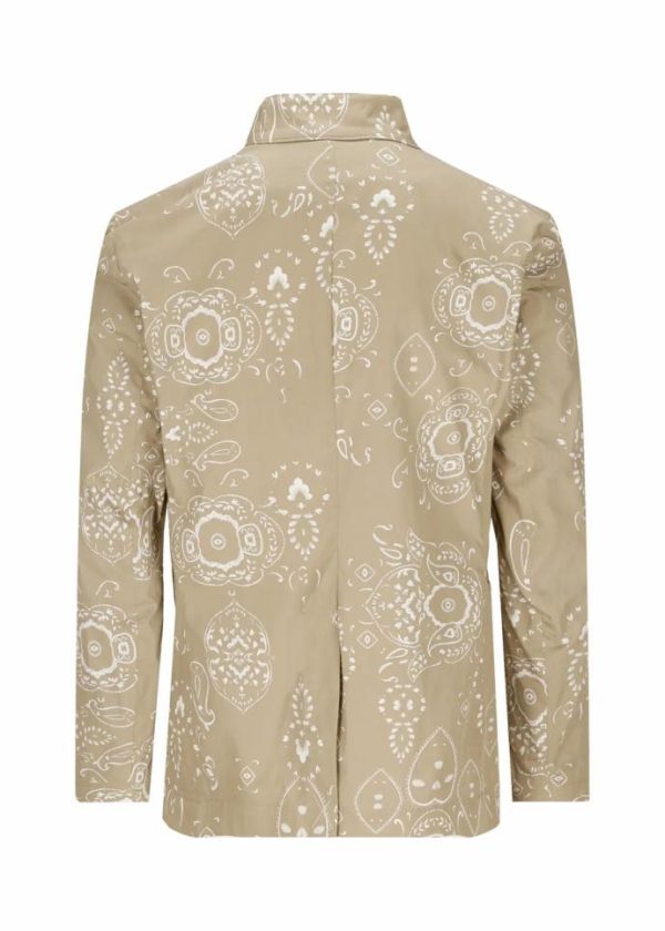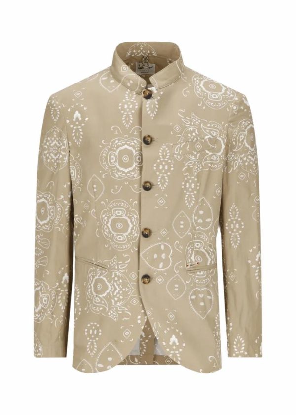 - Dieser ungefütterte, in Italien gefertigte Blazer im Regular Fit mit Stehkragen ist dank seinem leichten Hemdenstoff aus reiner Baumwolle wie gemacht für heiße Tage. Der exklusiv für Luis Trenker designte All-Over-Print mit Bandana-Motiv macht ihn zum extravaganten Hingucker.