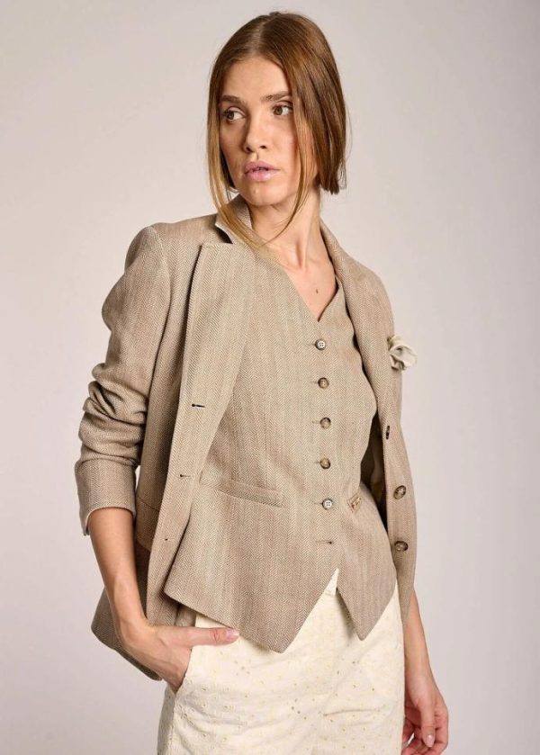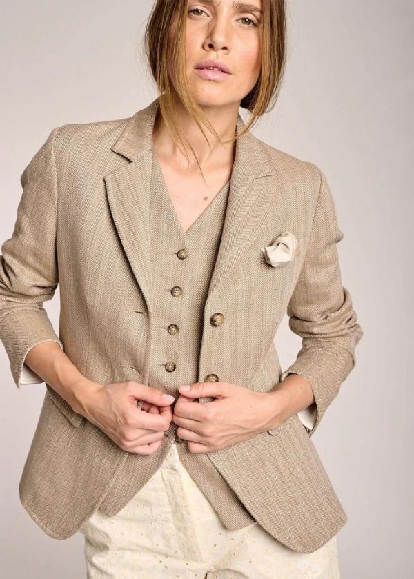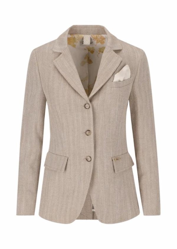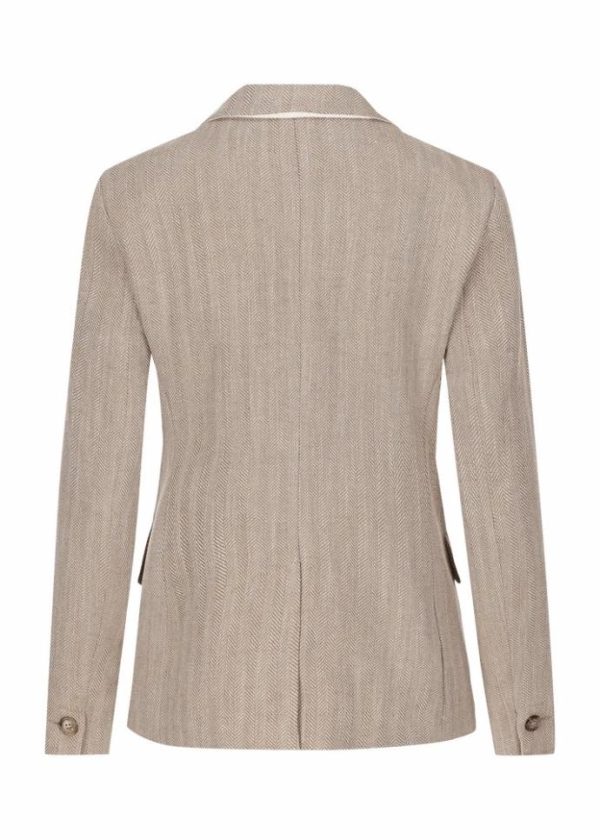 - Dieser halbgefütterte Blazer im Regular Fit mit Reverskragen und drei Knöpfen besteht aus einer angenehmen Baumwoll-Leinen-Mischung, die in Italien zu einem hochwertigen Jaspé – einem Gewebe, das sich durch sein meliertes, gesprenkeltes Aussehen auszeichnet – verarbeitet wurde. Sein zeitloses Fischgrätmuster und sein Innenfutter aus Viskosesatin im floralen Design sind seine einzigartigen Wiedererkennungsmerkmale.