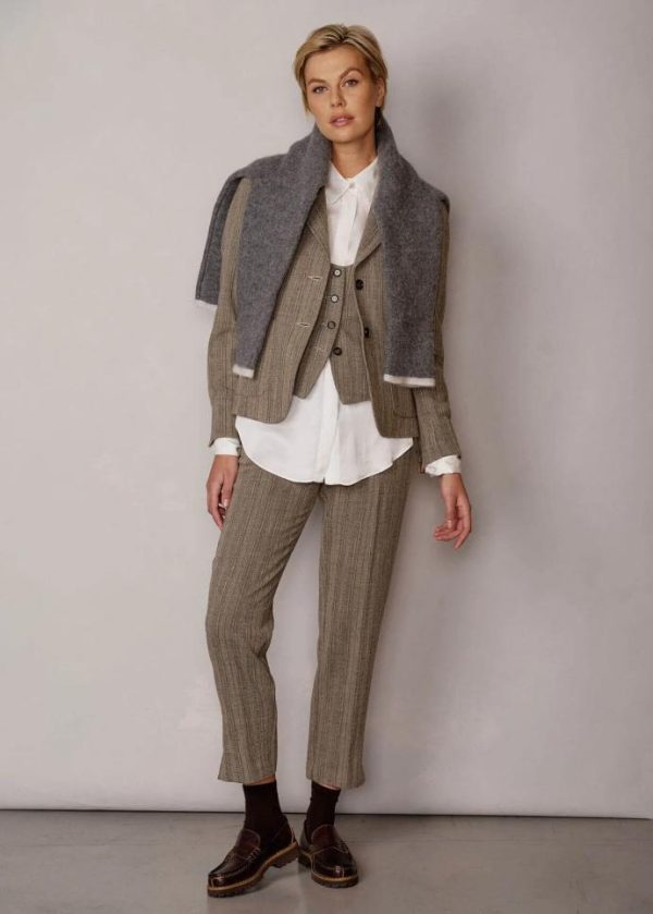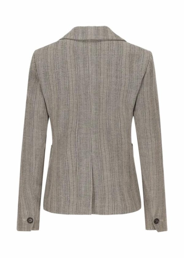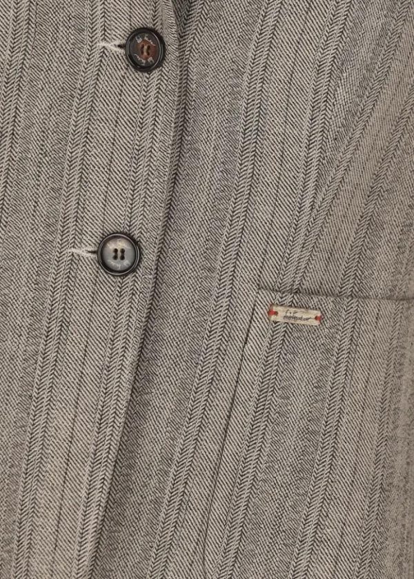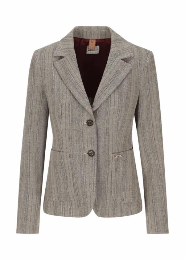 Besonderheiten: Angenehme Mischung aus Baumwolle und Schurwolle, extra Tragekomfort, klassisches Fischgrät-Jacquard, personalisiertes Jacquardband als Jackenaufhänger und an der Innenseite der Manschetten, Logoplakette in Hornoptik an der linken Tasche - Unser Model Chantal ist 1,78 m groß und trägt die italienische Größe 42.