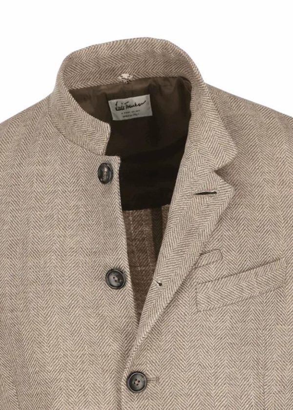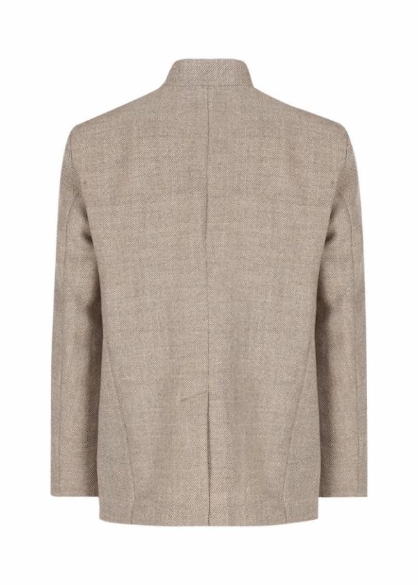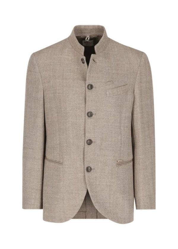 - Dieser halbgefütterte Blazer im Regular Fit mit Stehkragen besteht aus reiner Schurwolle mit zeitlosem Fischgrätmuster. Mit seinen hochwertigen Knöpfen aus Echthorn, sowie seinen dezenten Paspeltaschen setzt er klassische Akzente.