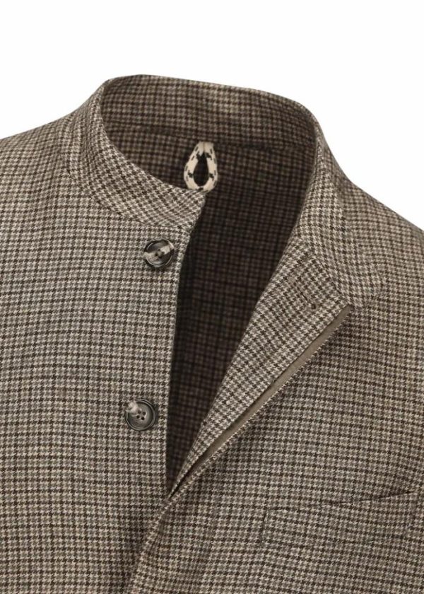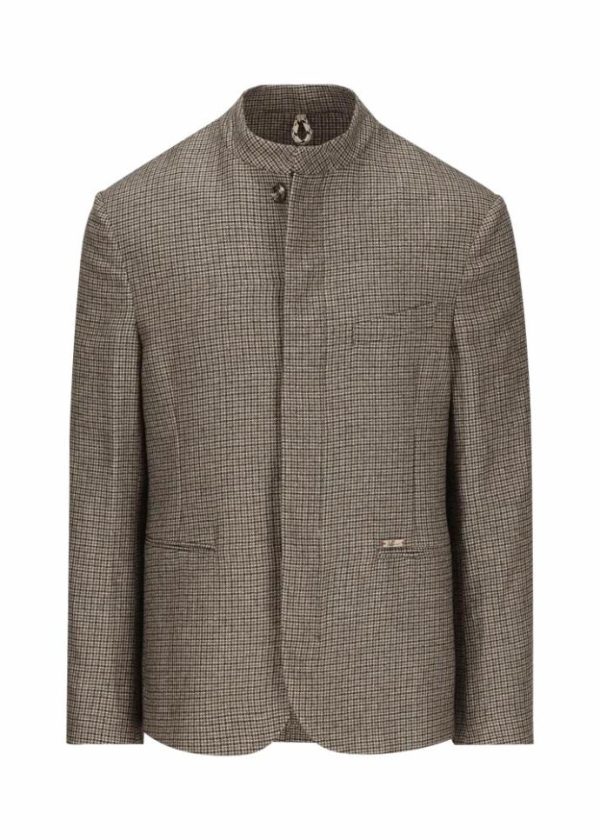 - Dieser halbgefütterte, in Italien gefertigte Blazer im Regular Fit mit Stehkragen und verdeckter Knopfleiste besteht aus einer angenehm leichten Mischung aus Leinen und Wolle mit Mikro-Hahnentrittmuster.