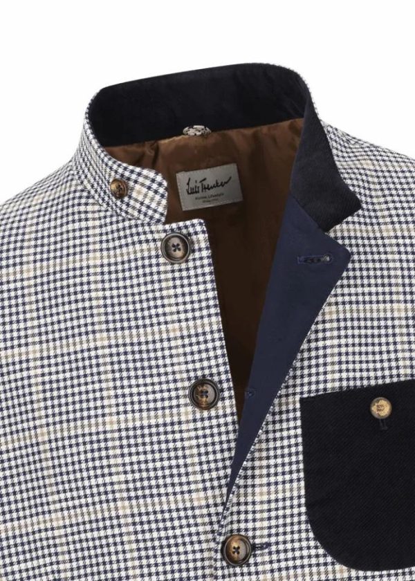 - Dieses klassische Blazermodell im Regular Fit mit Stehkragen ist ein fester Bestandteil der Markengeschichte von Luis Trenker: Vom ersten Moment an hat es die Herrenkollektion geprägt und ist seither in jeder Saison vertreten. Diese Variante besteht aus reiner Baumwolle mit Hahnentrittmuster und ist vollständig gefüttert. Die aufgesetzte Brusttasche mit Knopfverschluss, sowie die beiden Pattentaschen bestehen aus einem Kontraststoff, einem edlen, diagonal strukturierten Samt.