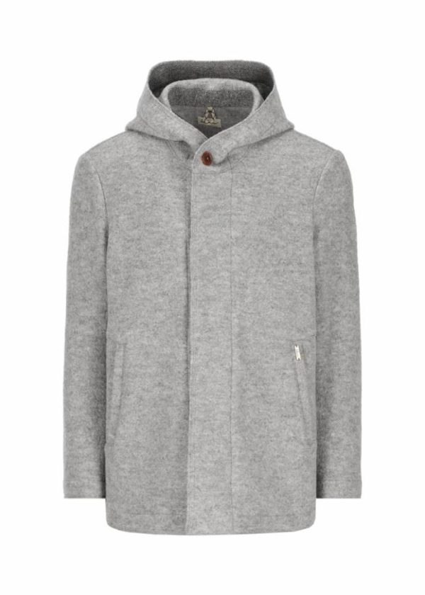 Besonderheiten: Walk aus reiner Schurwolle in besonders leichter Qualität, extra Tragekomfort, Innenseite von Kapuze und Knopfleiste im Kontraststoff mit Fischgrätmuster, Echtleder-Patch mit Luis Trenker Prägung am Rücken, Logoplakette in Hornoptik an der linken Tasche