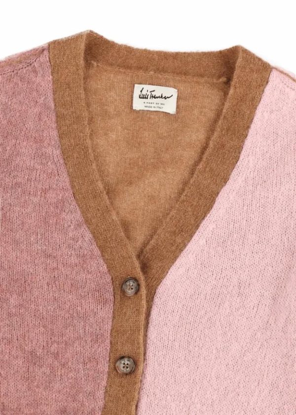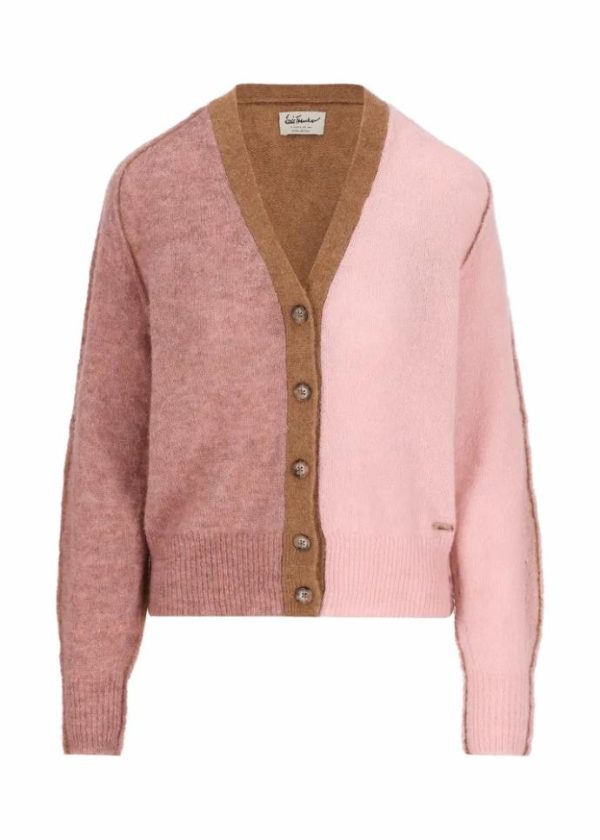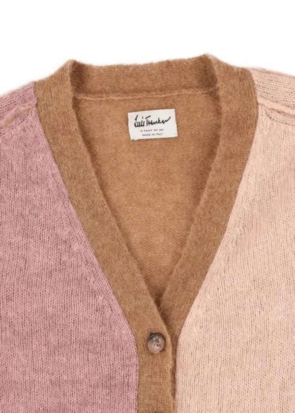 - Diese Strickjacke im Comfort Fit mit V-Ausschnitt und Knopfverschluss besteht aus einer hochwertigen, glatt gestrickten Mischung aus Alpaka- und Merinowolle. Die Raw-Cut-Nähte, die Ballonärmel, sowie die Kombination drei verschiedener Farbtöne verleihen ihr einen originellen Touch.