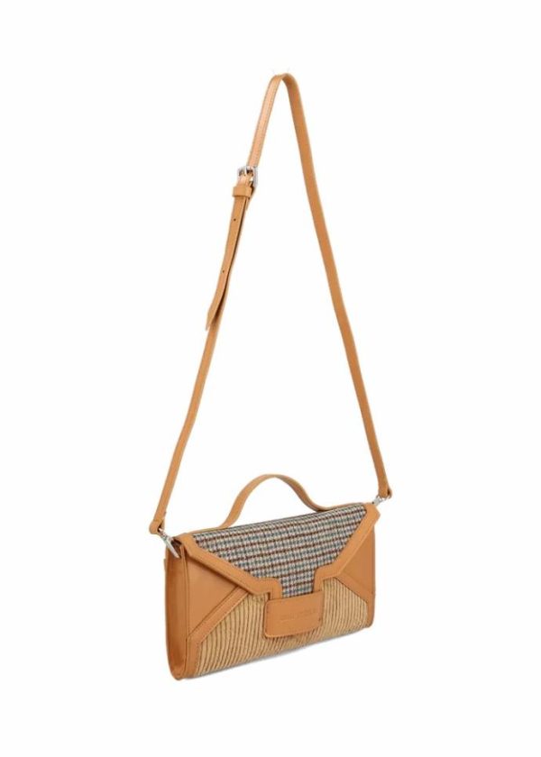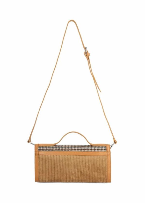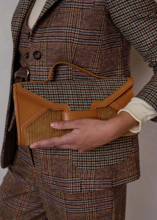 - Diese originelle Clutch zieht mit ihrem Materialmix aus Cord, Echtleder und einer Wollmischung mit Hahnentrittmuster alle Blicke auf sich. Mit ihrer spitz zulaufenden Klappe und dem Magnetknopf lässt sie sich wie ein Briefumschlag verschließen. Dank abnehmbarem Schultergurt und Henkel aus Echtleder kannst Du sie sowohl über die Schulter, als auch in der Hand tragen.