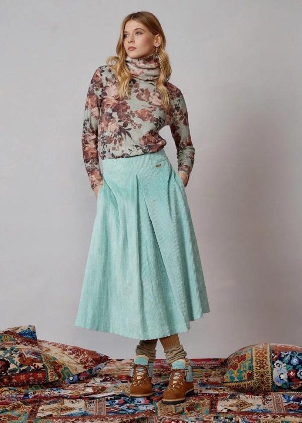 - Dieser ungefütterte, a-linienförmige Midirock im Comfort Fit besteht aus Stretch-Cord und umspielt die Figur mit einer Kellerfalte vorne und hinten. An der Hinterseite ist der Bund leicht elastisch, was für maximalen Tragekomfort sorgt.