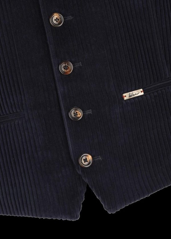 - Diese in Italien gefertigte, einreihige Weste im Regular Fit mit V-Ausschnitt aus reinem Baumwollcord ist am Rücken, der aus Viskosesatin besteht, in der Weite regulierbar. Sie hat eine einreihige 6-Button-Front mit Knöpfen aus Echthorn, sowie vier Leistentaschen.