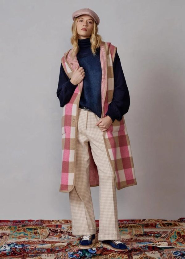 - Diese Weste aus doppelseitiger Wollmischung im Oversized Fit mit Kapuze ist die beste Wahl für alle, die sich nicht festlegen wollen: Denn sie ist wendbar und somit sowohl mit Buffalo-Karomuster, als auch mit Hahnentrittmuster tragbar. Was wir zudem an ihr lieben: Die verdeckte Knopfleiste mit praktischen Druckknöpfen und der Gürtel zum Betonen der Taille.