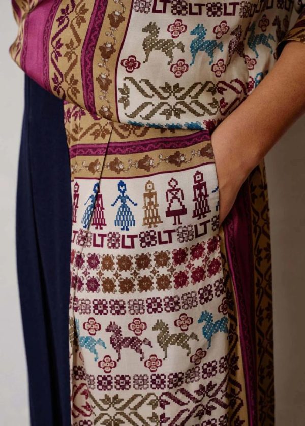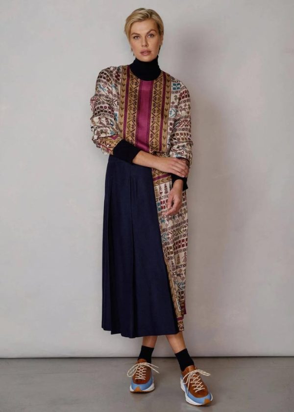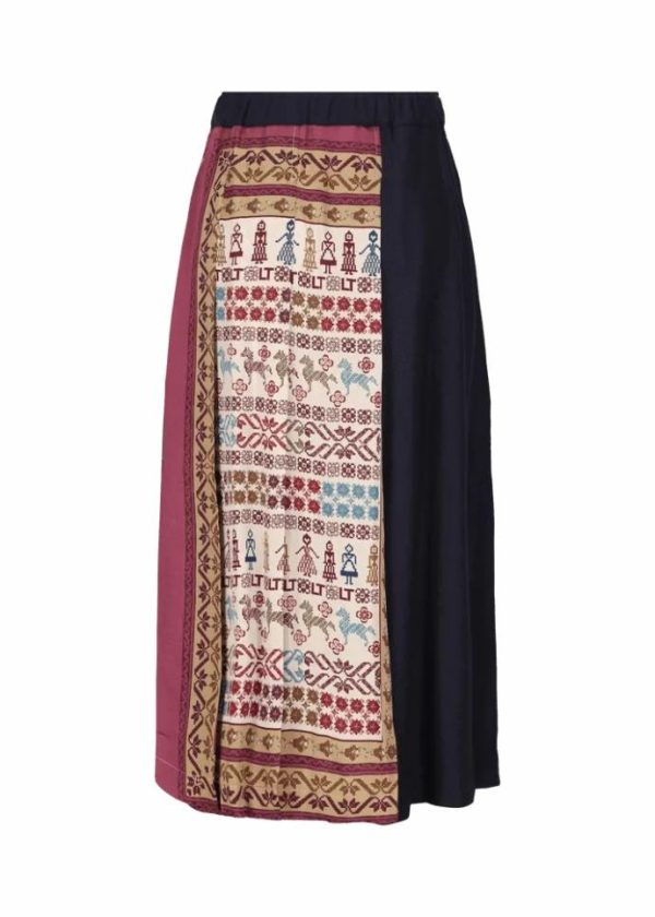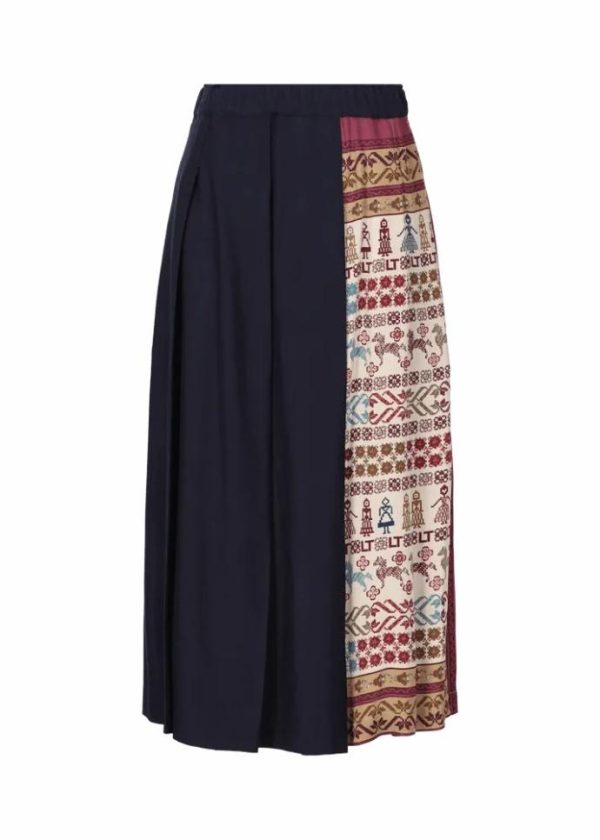 Luis Trenker Faltenrock Im Materialmix Lumatilda Dunkelblau Himmelblau | Damen Röcke