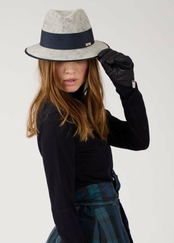 - Dieser Hut gehört zur Familie der Fedorahüte, welche als Filzhüte gelten, deren Krempe hinten leicht hochgestellt ist und nach vorne hin abfällt. Ebenfalls typisch ist das an beiden Seiten eingedellte Kopfteil. Unsere Interpretation dieses Klassikers besteht aus reinem Wollfilz und wird von einem Band in Kontrastfarbe geziert.