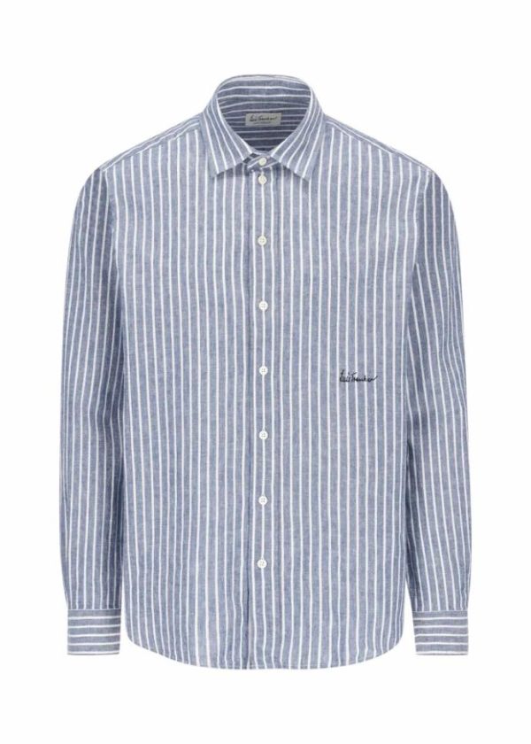 Knopfleiste: Durchgehende Knopfleiste - Besonderheiten: Hochwertiges Mischgewebe aus Baumwolle und Leinen, zeitloses Streifenmuster, gesticktes Luis Trenker Logo