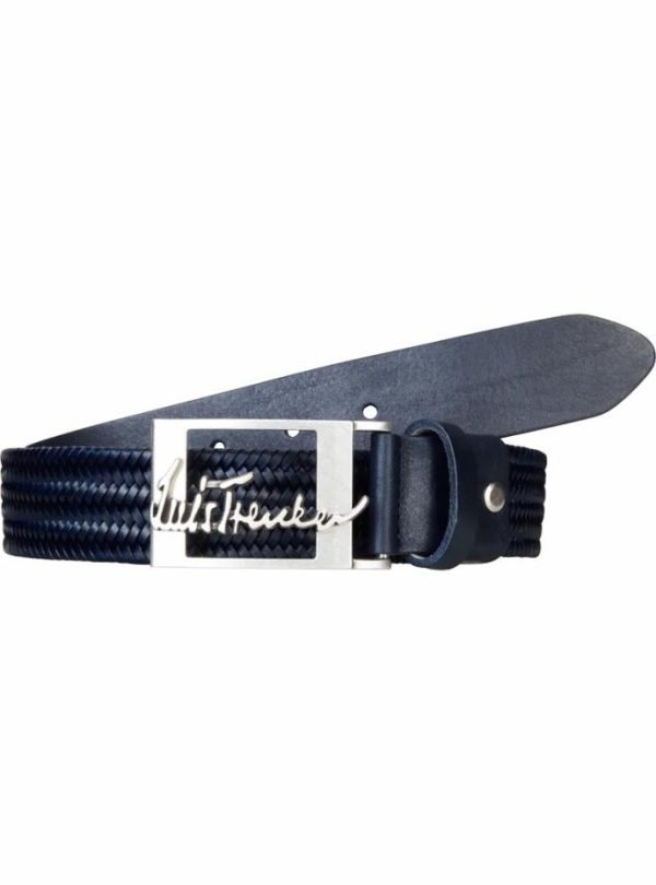 - Raffiniertes Flechtwerk: Geflochtener Ledergürtel mit metallischer Logoschnalle