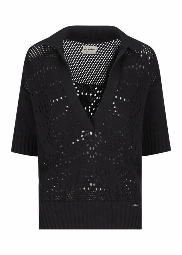 Luis Trenker Häkelpullover Mit Tiefem V-Ausschnitt Lualtea Schwarz | Damen Strickmode