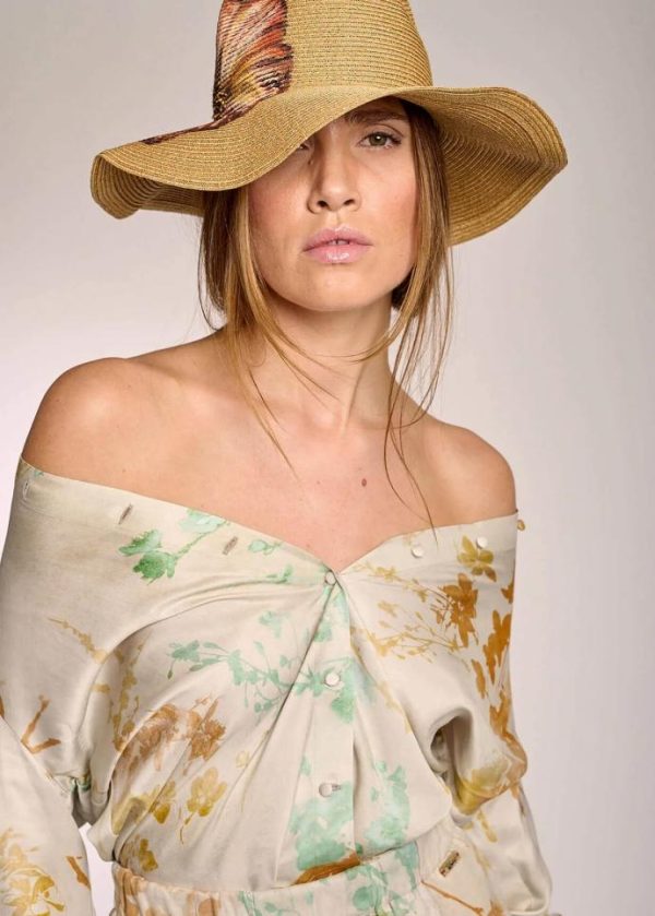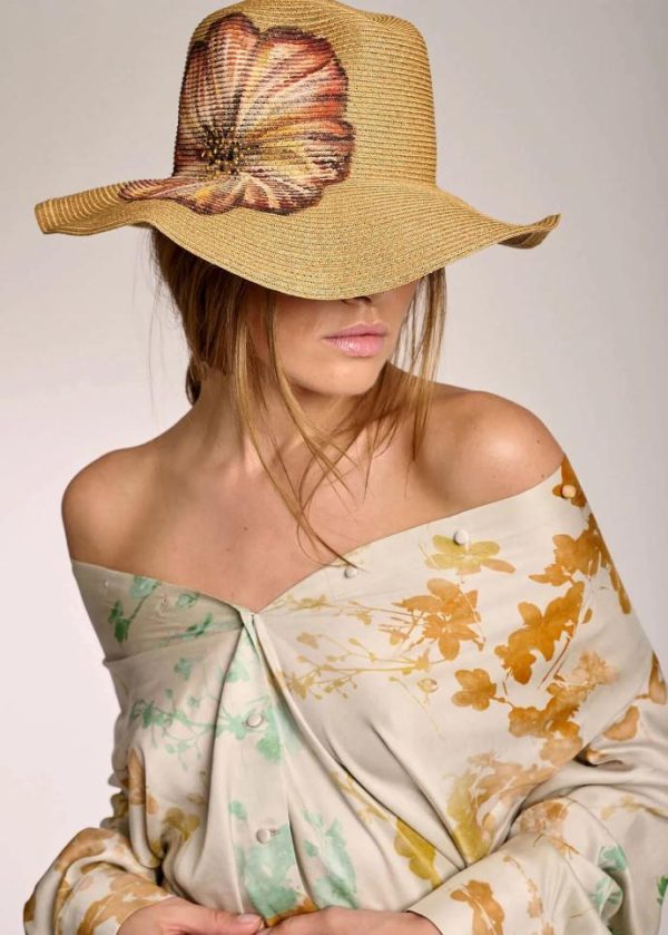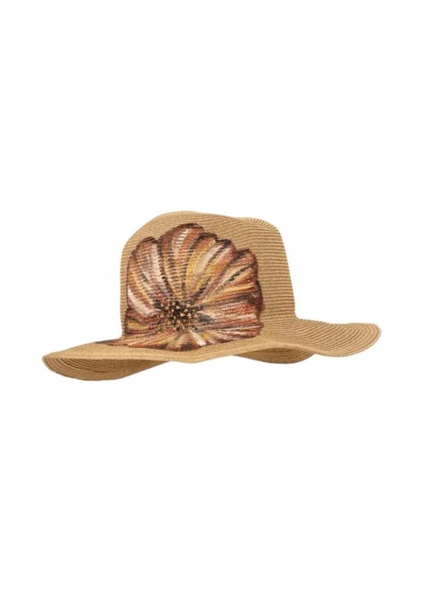 - Dieser in Italien gefertigte Strohhut mit breiter Krempe wurde von Hand mit einem großen, kunstvollen Blumenmotiv bemalt und ist ein außergewöhnliches Accessoire für Individualistinnen.