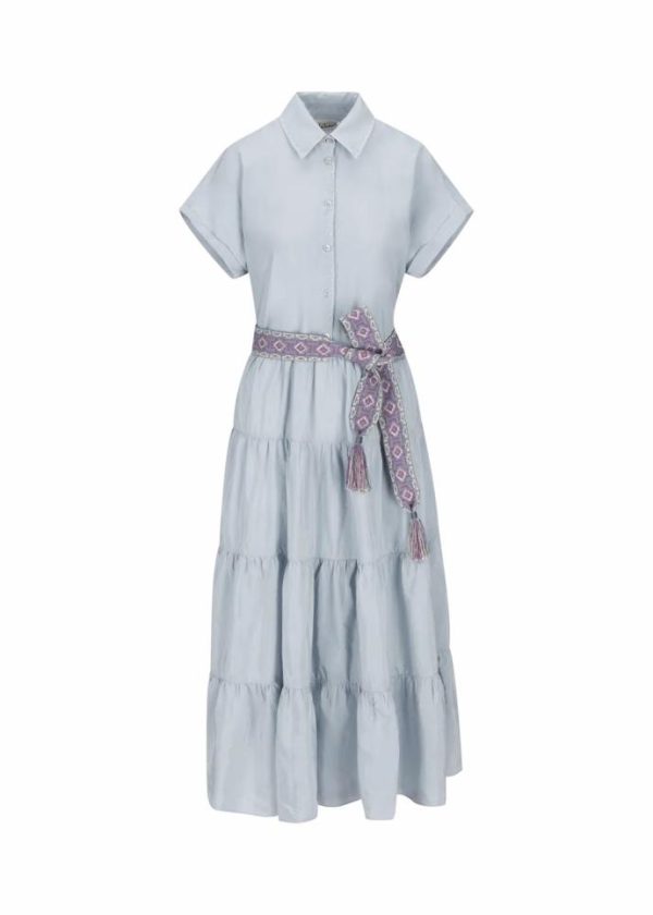 Luis Trenker Hemdblusenkleid Mit Volants Lucinzia Azurblau | Damen Kleider