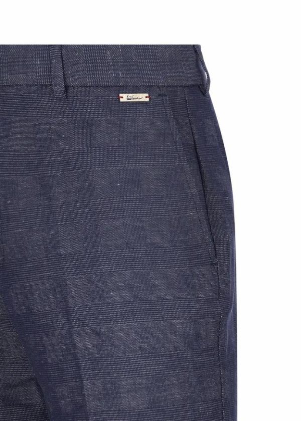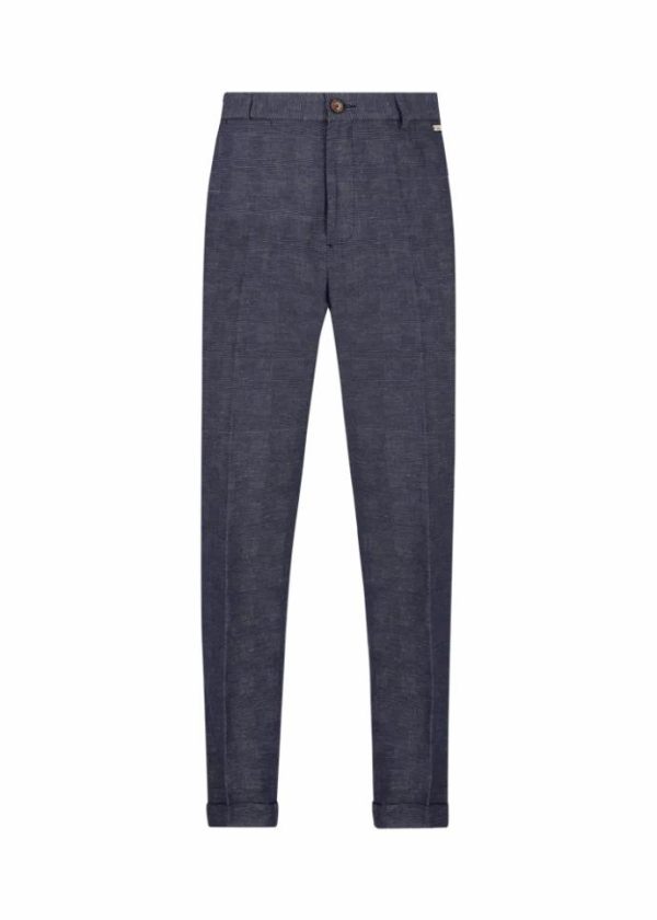 - Diese lange Hose im Regular Fit mit etwas weiterem Bein, Bügelfalte und Saumumschlag besteht aus einer angenehmen Mischung der beiden Naturfasern Leinen und Baumwolle im Dark Denim Look mit zeitlosem Glencheckmuster.