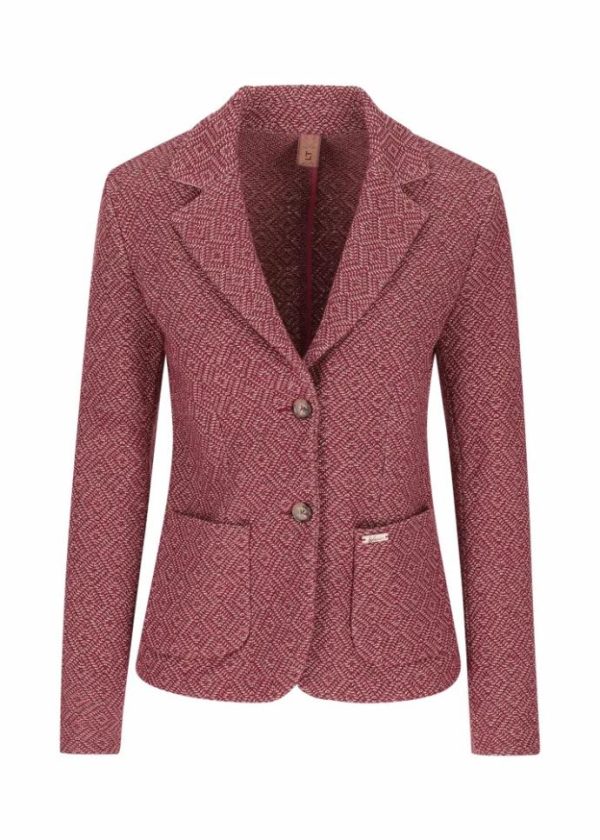 - Dieser ungefütterte Blazer im Regular Fit mit Reverskragen besteht aus einem angenehmen Baumwoll-Schurwoll-Jersey mit elegantem Rautenmuster in Jacquard-Verarbeitung – die perfekte Kombination aus Komfort und Eleganz.