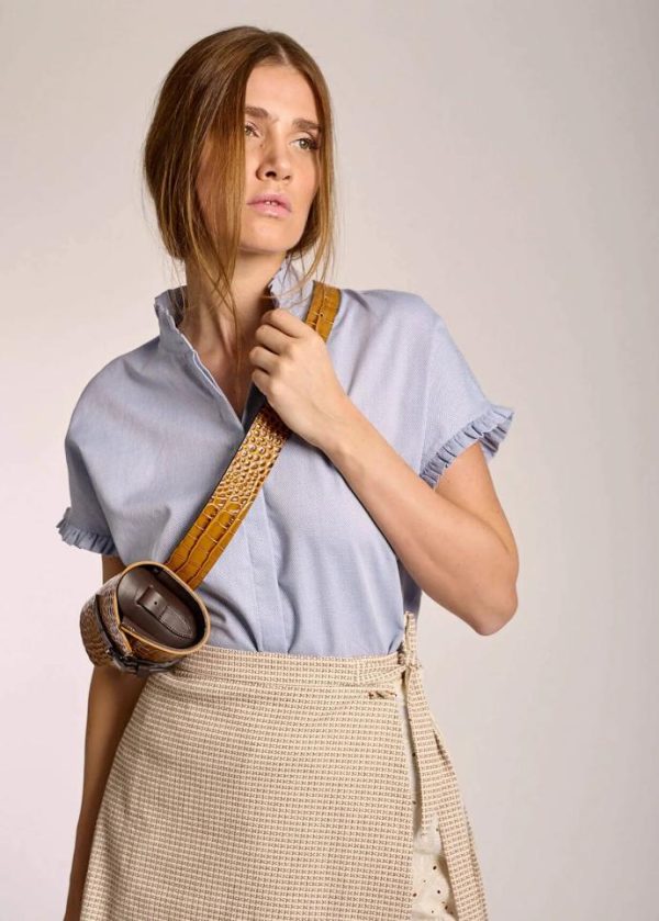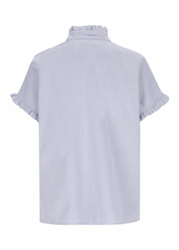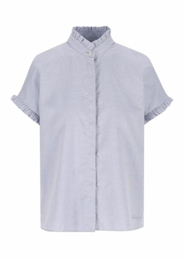 - Diese Bluse im Regular Fit mit kurzen Ärmeln, Stehkragen und verdeckter Knopfleiste besteht aus reiner, strukturierter Baumwolle. Die verspielten Rüschen am Kragen und an den Ärmeln, die schimmernde Perle als Knopf am Kragen und die Seitenschlitze machen sie zu einer femininen Sommerbegleiterin.