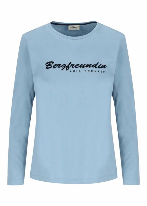 - Dieses T-Shirt im Slim Fit mit langen Ärmeln und Rundhalsausschnitt besteht aus reiner Baumwolle und ist mit dem Schriftzug „Bergfreundin“ aus edlem Samt als Applikation an der Brust ein Muss für alle Fans alpiner Abenteuer.