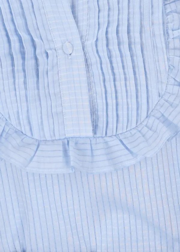 Taschen: Zwei seitliche Eingrifftaschen - Besonderheiten: Leichtes, transparentes Baumwoll-Devoré, abnehmbarer Stoffgürtel im Ethno-Look mit Quastenabschluss, Plastron mit Plissee und Volants
