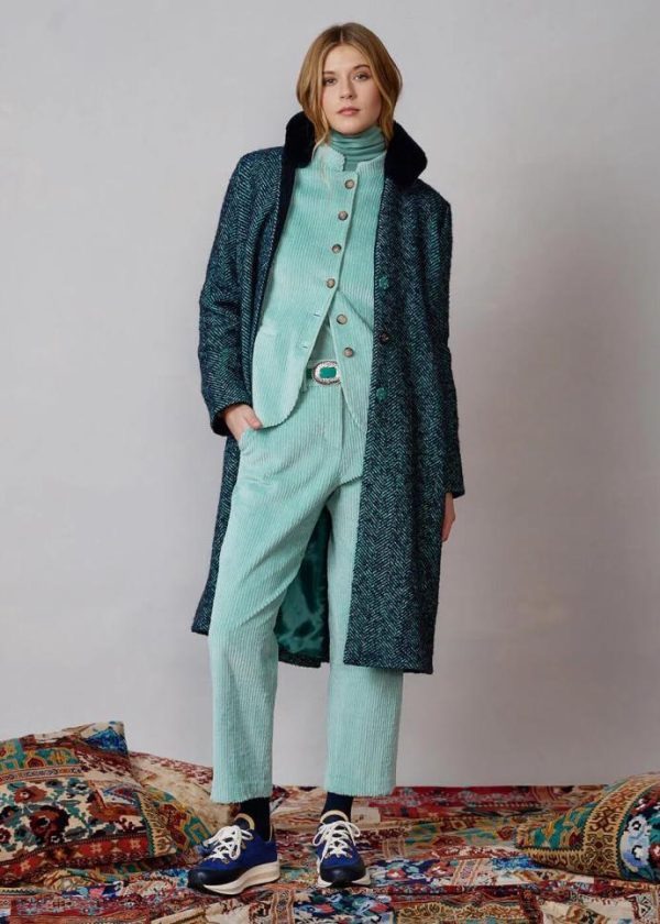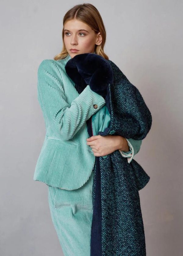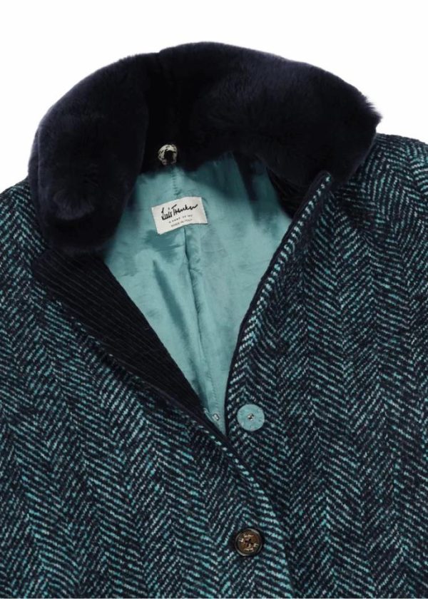 Herkunft: Stoff aus Italien - Besonderheiten: Abnehmbarer Kragen aus Kaninchenpelz, Logoplakette in Holzoptik an der linken Tasche