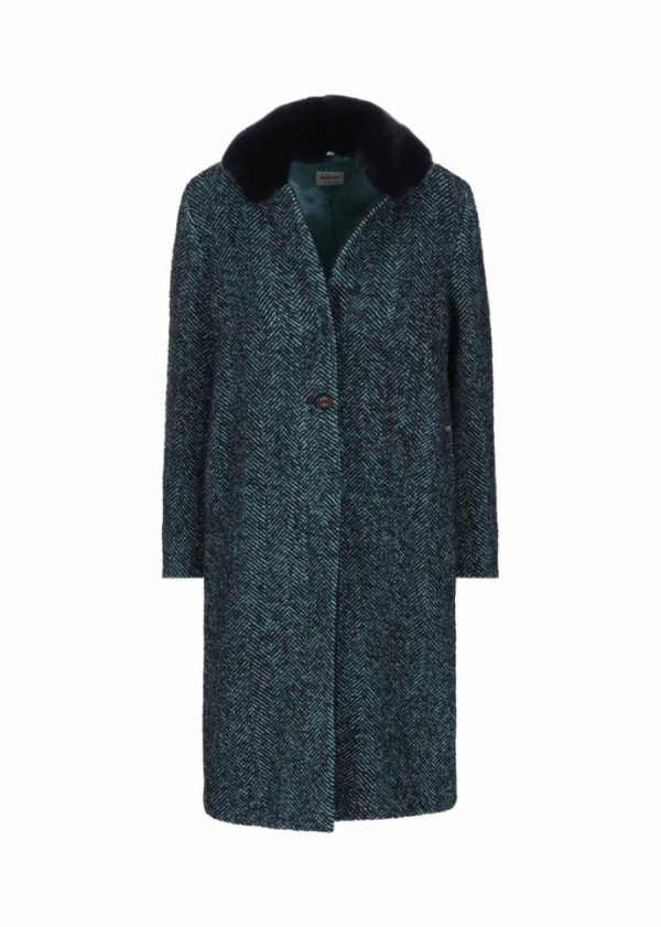 - Dieser gefütterte Mantel im Regular Fit mit geschlossenem Reverskragen besteht aus einer angenehmen Wollmischung mit Fischgrätmuster. Er zeichnet sich durch seinen abnehmbaren Kaninchenpelzkragen, seine cleane One-Button-Front und die praktischen Druckknöpfe an der Innenseite aus.