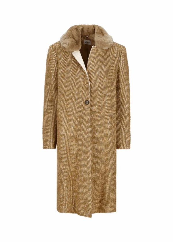 - Dieser gefütterte Mantel im Regular Fit mit geschlossenem Reverskragen besteht aus einer angenehmen Wollmischung mit Fischgrätmuster. Er zeichnet sich durch seinen abnehmbaren Kaninchenpelzkragen, seine cleane One-Button-Front und die praktischen Druckknöpfe an der Innenseite aus.