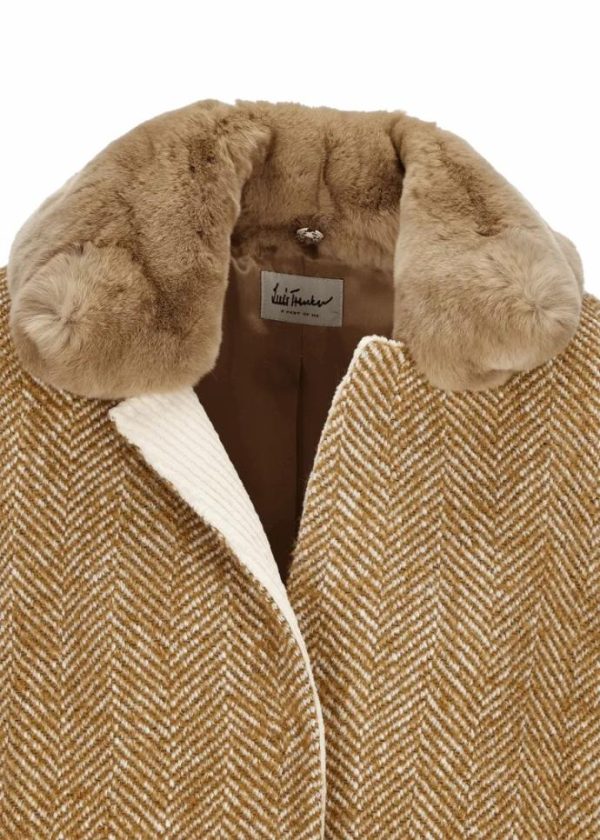 Herkunft: Stoff aus Italien - Besonderheiten: Abnehmbarer Kragen aus Kaninchenpelz, Logoplakette in Holzoptik an der linken Tasche