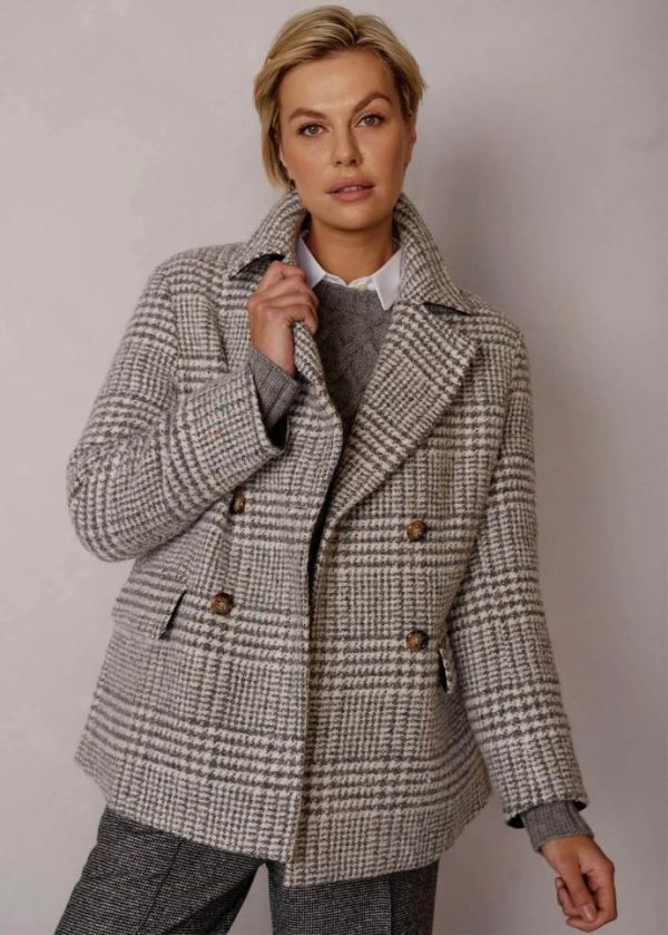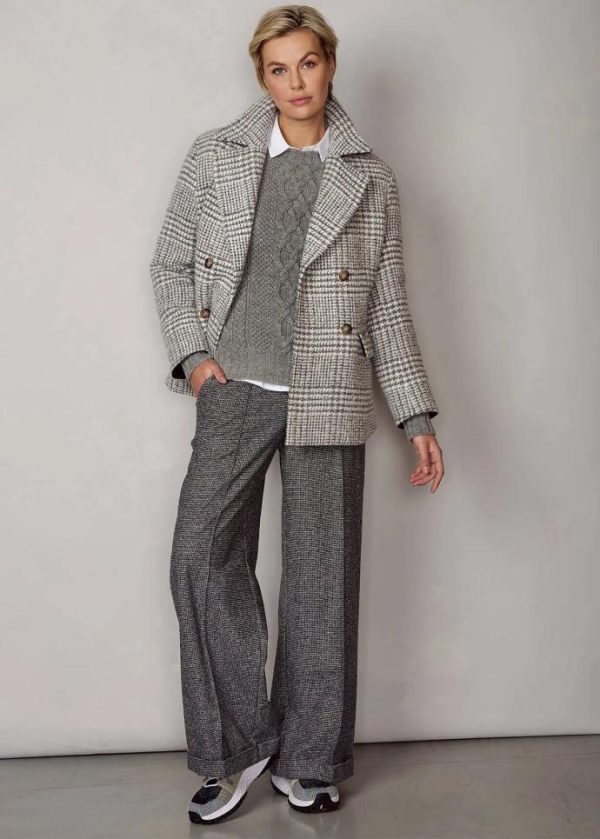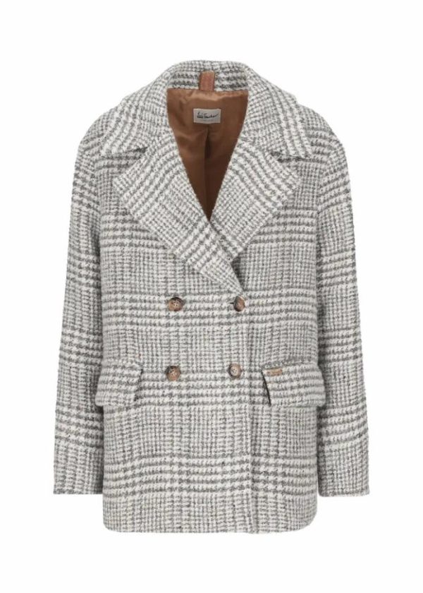 Luis Trenker Mantel Mit Prince Of Wales Muster Lumarta Hellgrau Kaltweiß | Damen Outdoor Jacken & Mäntel