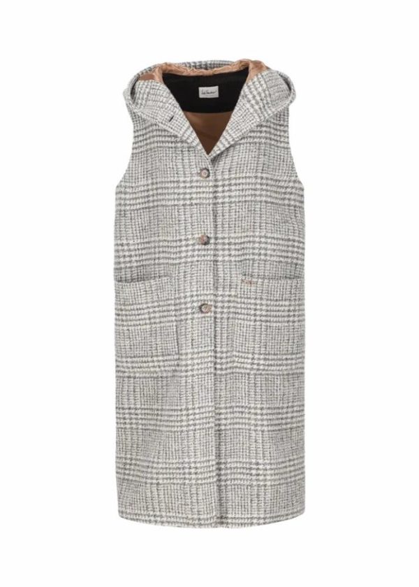 - Diese Outdoor-Weste im Comfort Fit mit Kapuze und Knopfverschluss besteht aus einer hochwertigen Wollmischung, verarbeitet zu einem eleganten Bouclé mit Prince of Wales Muster.
