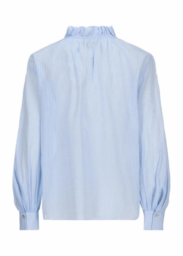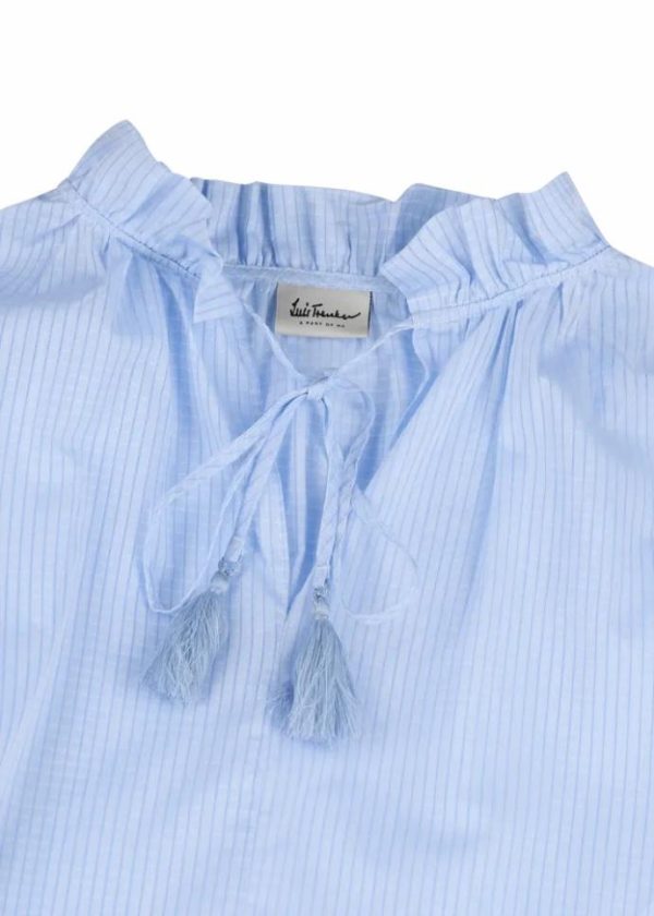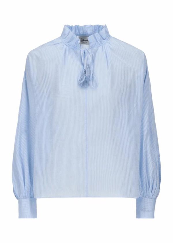 - Diese Bluse im Oversized Fit mit Rüschenkragen und tropfenförmigem Ausschnitt besteht aus einem leichten, transparenten Baumwollstoff. Die langen Ballonärmel und die mit Quasten verzierten Bänder, die zur Schleife gebunden werden können, betonen ihr verspieltes Design.