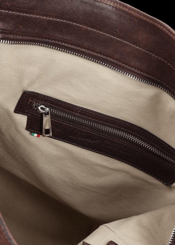 Maße: 36 x 44 x 18 cm - Besonderheiten: Zwei Henkel, zusätzlich verstellbarer und abnehmbarer Schultergurt, Kanten mit Leder verstärkt, Lederpatch mit geprägtem Luis Trenker Schriftzug