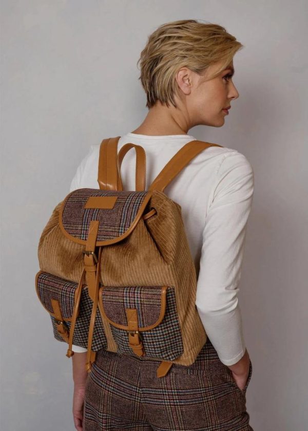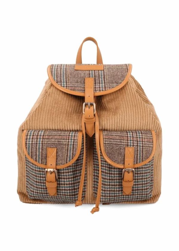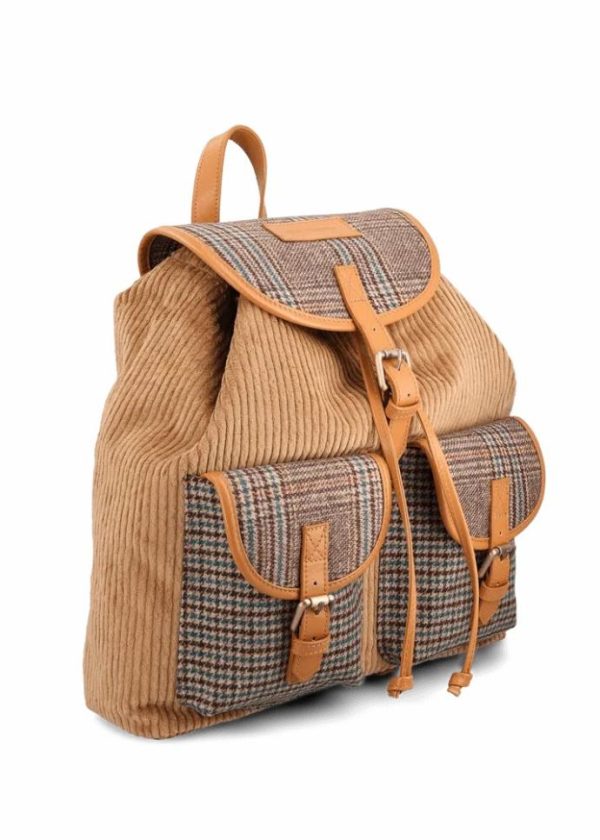 - Dieser geräumige Rucksack besteht aus Cord und zeichnet sich durch seine praktischen Magnetverschlüsse, sowie die beiden Kontraststoffe mit Hahnentrittmuster und Prince of Wales Muster aus. Er wird in Italien gefertigt und bietet genügend Platz für alles, was Du unterwegs brauchst.