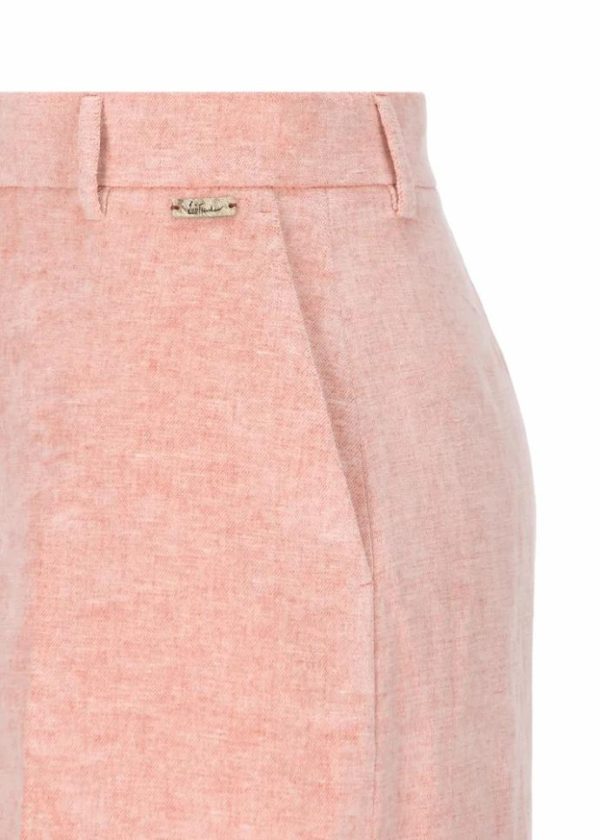 Besonderheiten: Hochwertige Mischung aus den Naturfasern Baumwolle und Leinen, Innendetails mit floralem Muster, Saumumschlag, Bügelfalte, Logoplakette links am Bund