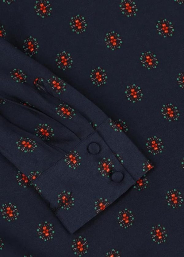 - Diese Schluppenbluse im Comfort Fit besteht aus reiner Viskose mit exklusiv für Luis Trenker entworfenem Print. An der Hinterseite des hohen Stehkragens befindet sich ein tropfenförmiger Schlitz mit verdecktem Knopfverschluss.
