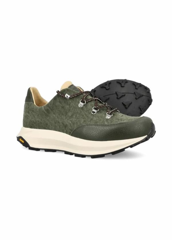 - Dieser handgefertigte Sneaker besteht außen aus Baumwollcanvas und Glattleder, während sein Innenfutter aus weichem Leder gefertigt ist. Mit seiner ergonomisch geformten Vibram-Plateausohle hebt er den Komfort auf ein neues Level.