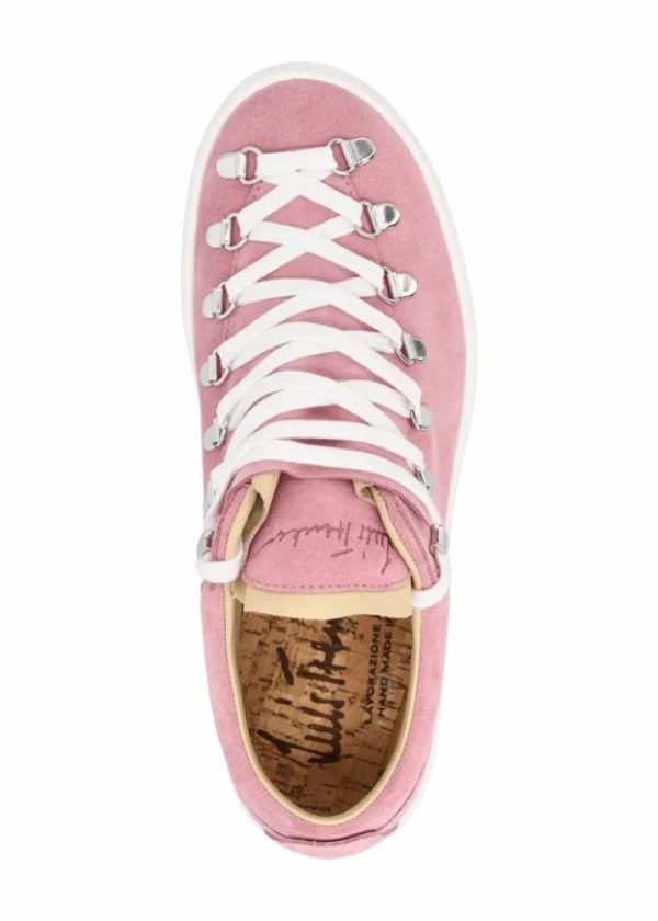- Dieser handgefertigte Sneaker mit Plateausohle besteht außen aus echtem Wildleder, während sein Innenfutter aus weichem Glattleder gefertigt ist. Die metallischen Ösen im Bergschuh-Stil verleihen ihm alpinen Charme, mit seiner Plateausohle und seiner atmungsaktiven Kork-Innensohle hebt er den Komfort auf ein neues Level.