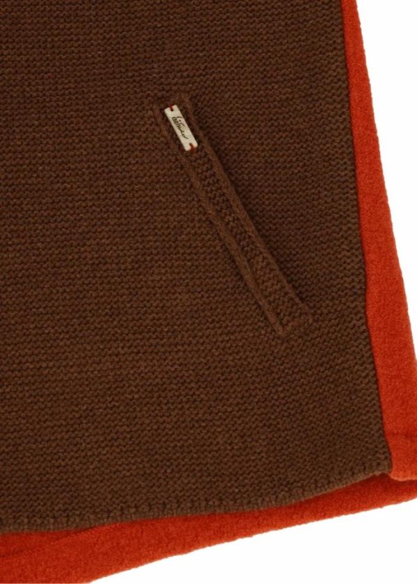 Herkunft: In Italien gefertigt - Besonderheiten: Extra Tragekomfort, Vorderteil traditionell im Stil der „Sarner Janker“ links gestrickt, Logoplakette in Holzoptik an der linken Tasche