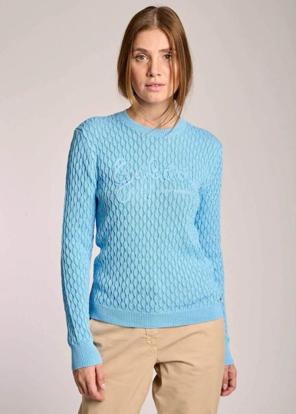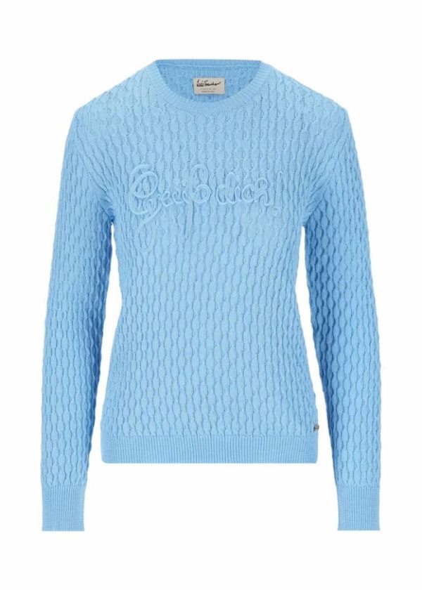 Luis Trenker Strickpullover Mit Zopfmuster Und Stickerei Luannabella Himmelblau | Damen Strickmode
