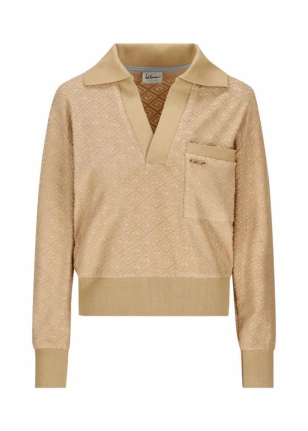 - Dieses Sweatshirt im Regular Fit mit V-Ausschnitt und Polokragen besteht aus Baumwolle und Nylon, verarbeitet zu einem bequemen Jersey-Frottee mit exklusiv für Luis Trenker entworfenem All-Over Rautenmotiv aus den Initialen LT.