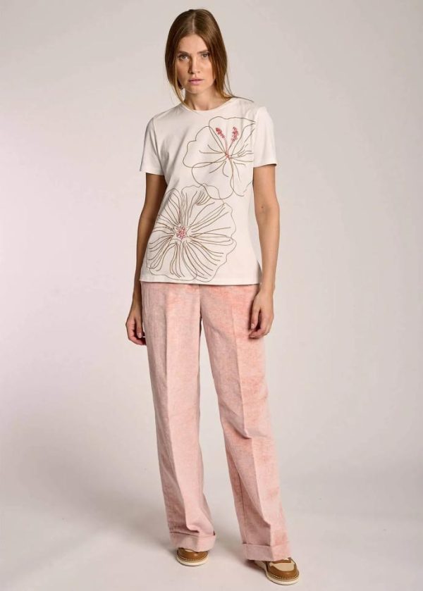 - Dieses T-Shirt im Slim Fit mit kurzen Ärmeln und Rundhalsausschnitt besteht aus reiner Baumwolle und bringt mit seinen beiden Maxi-Blumen, die als Print in Rubber-Technik mit gestickten Elementen die gesamte Vorderseite zieren, eine verspielte Note in Deine Garderobe.