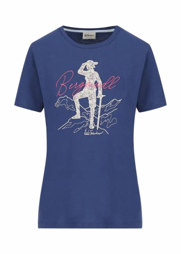 Ausschnitt: Rundhalsausschnitt - Besonderheiten: Extra Tragekomfort, Schriftzug „Bergmadl“ als Stickerei, Motiv einer Bergsteigerin in Mischtechnik aus gestickten und gedruckten Elementen