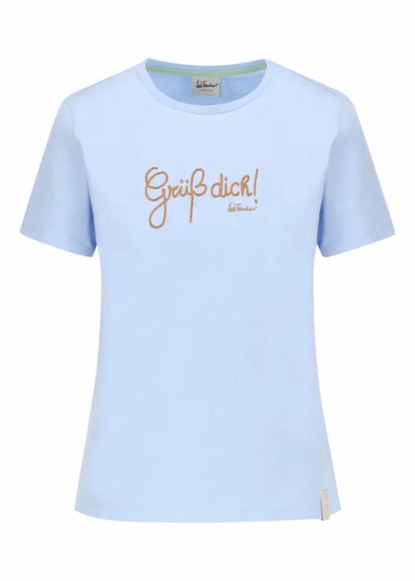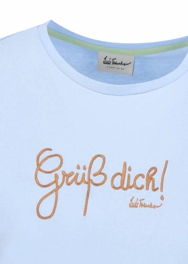 - Dieses T-Shirt im Slim Fit mit kurzen Ärmeln und Rundhalsausschnitt besteht aus reiner Baumwolle und wird dank seinem Schriftzug „Grüß Dich!“ als Stickerei an der Brust garantiert zum Gesprächsthema – ganz egal, ob unter guten Freunden oder neuen Bekannten.