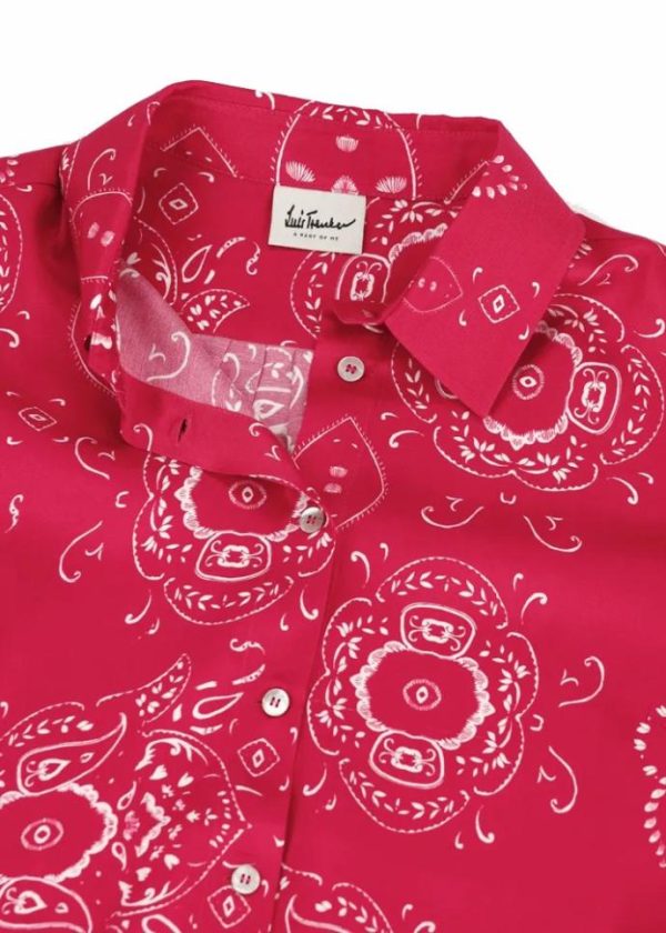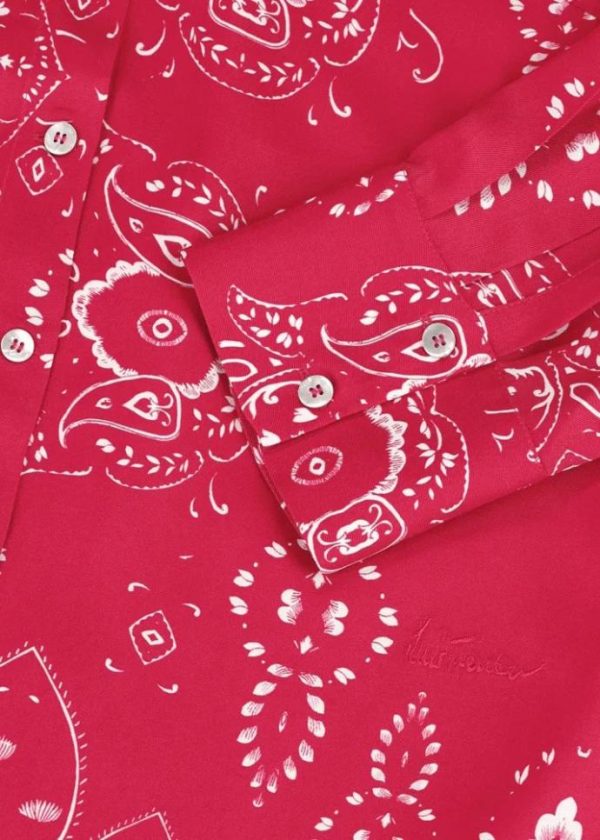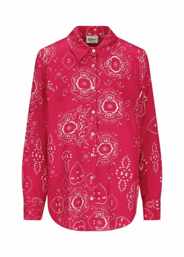 - Diese durchgeknöpfte Bluse im Comfort Fit mit klassischem Kentkragen besteht aus reiner Viskose mit exklusiv für Luis Trenker designtem Bandana-Print. Ihre edel schimmernden Knöpfe aus echtem Perlmutt verleihen ihr zudem eine elegante Note.